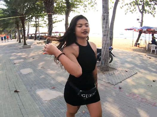 فتاة تايلاندية صغيرة تغوي لثلاثي شرجي عنيف في العلن من قبل سائح